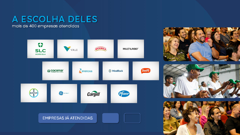Mais de 400 empresas atendidas em todo o Brasil, com alto índice de satisfação e engajamento dos participantes.