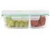 Pote hermético em vidro com 2 divisórias, ideal para separar alimentos.